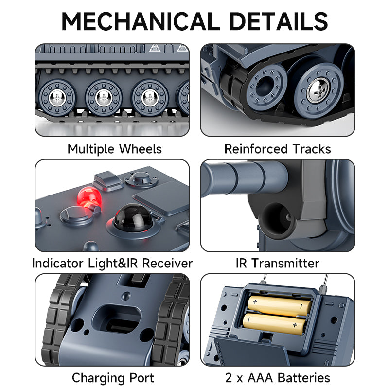- Real Tank Simulation – Authentic track movement, LED indicator light, realistic sound, and IR receiver