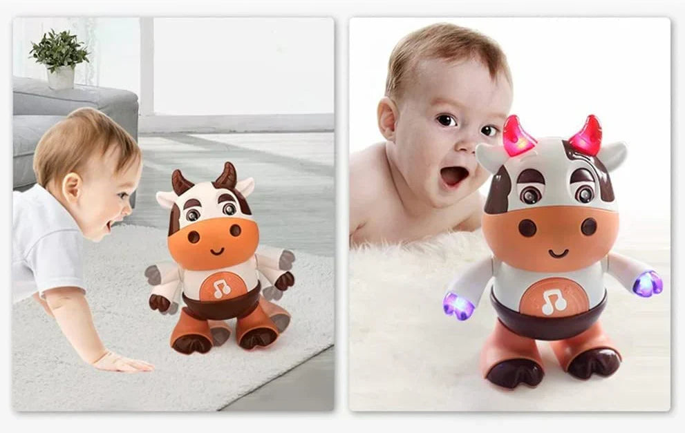 The colorful lights on the toy attract children's attention in no time. The cow's many body movements and sounds arouse all children's curiosity.